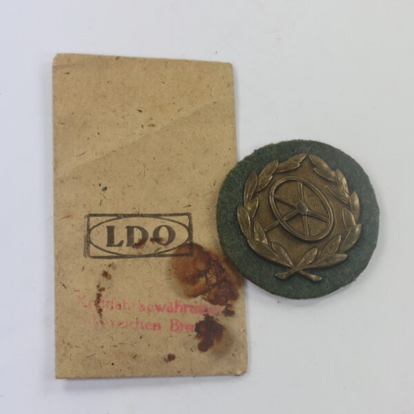 Kraftfahrerbewährungsabzeichen in Bronze, in LDO Verkaufstüte