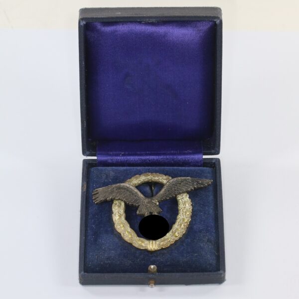 Flugzeugführerabzeichen der Luftwaffe, Hst. Juncker, 1. Modell (Ausschnitt), im frühen Etui