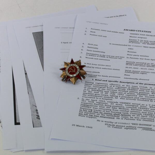 Sowjetunion, Orden des Großen Vaterländischen Krieges 1. Klasse mit Archiv Material.