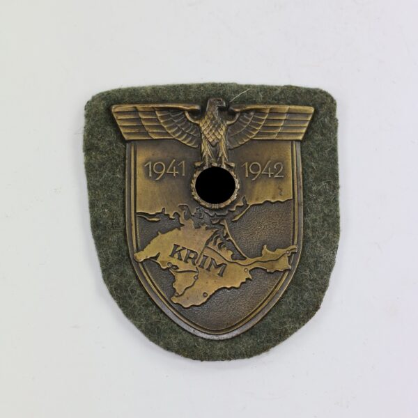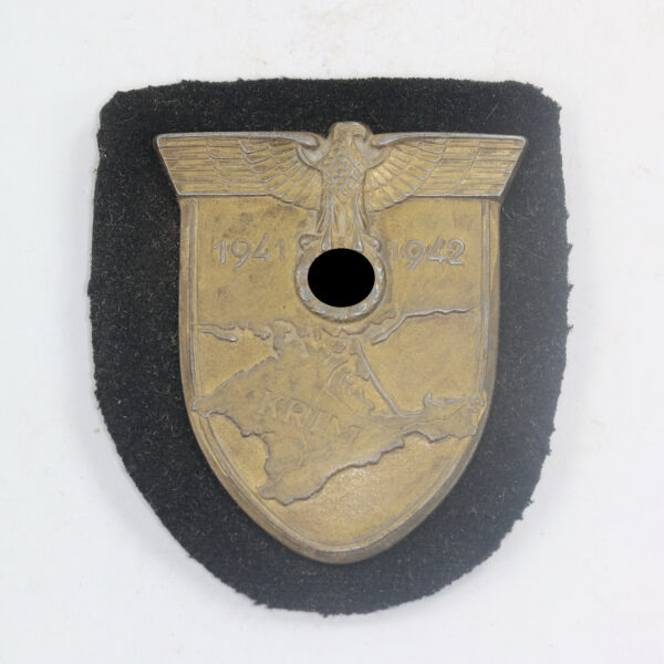 Krimschild auf schwarzen Panzer (!) Stoff, Wilhelm Deumer, Lüdenscheid