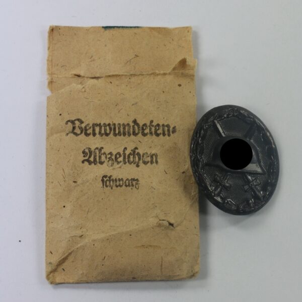 Verwundetenabzeichen in Schwarz 1939, Hst. 32, in Verleihungstüte W. Hobachter, Wien 107