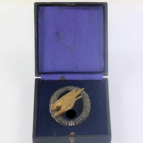 Fallschirmschützenabzeichen der Luftwaffe, Hst. W. Deumer Lüdenscheid, im Deumer Etui