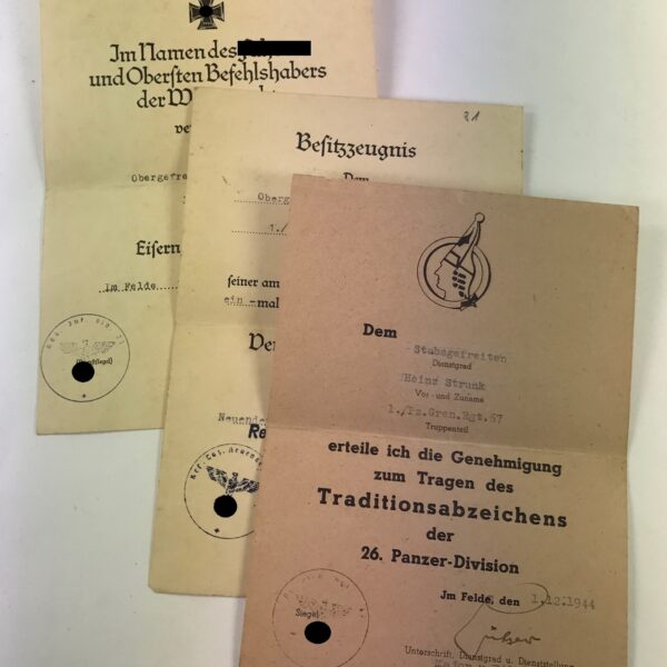 Urkunden Gruppe 26. Panzer Division, mit Urkunde Traditionsabzeichen (!)