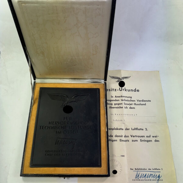 Luftwaffe, Plakette für hervorragende technische Leistungen im Osten, im Etui mit Urkunde