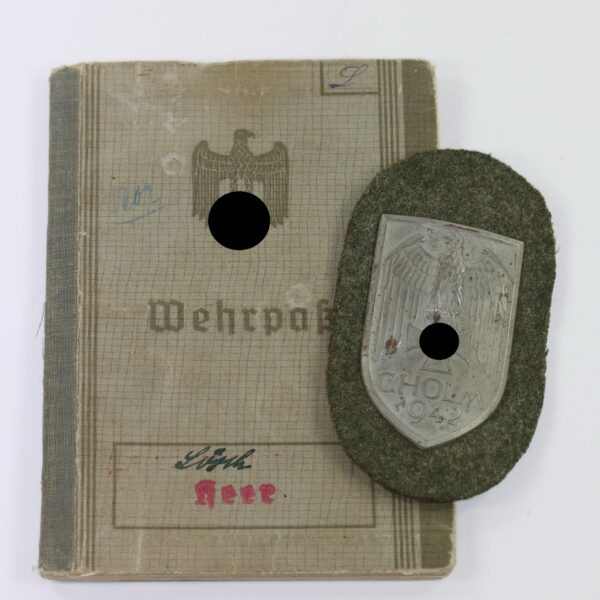 Cholmschild auf Heeresstoff, „Short M“ mit Wehrpaß, „Georg Lösch“