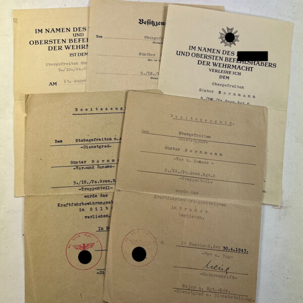 Urkunden Gruppe Panzer Grenadier Regiment 8 (9./IG/Pz.Gren.Rgt.8)