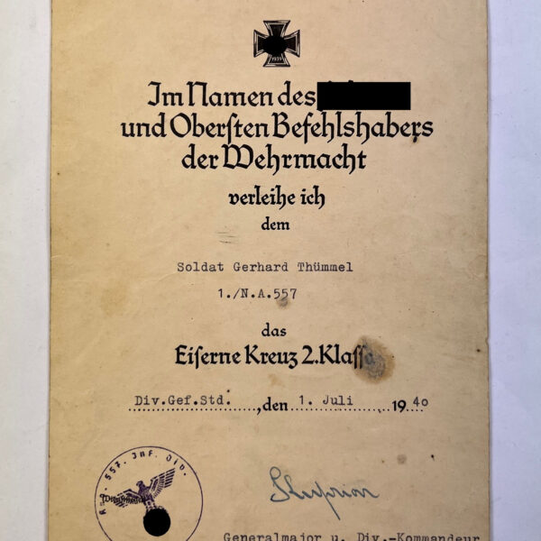 Urkunde Eisernes Kreuz 2. Klasse 1939, Nachrichten Abteilung 557 (N.A. 557)