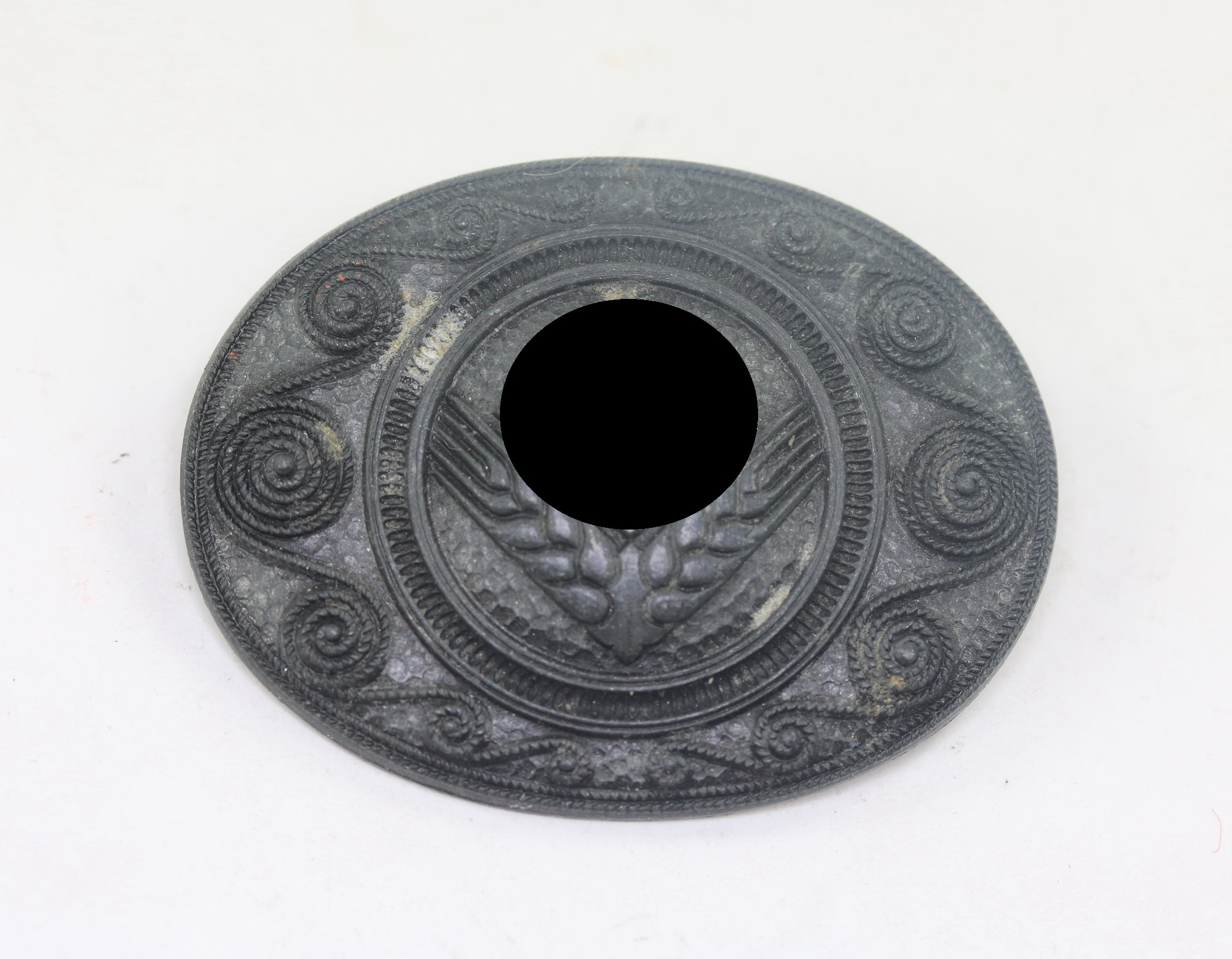 Zink, versilbert, sehr guter, leicht getragener Zustand. Mit Hersteller „AN.G.