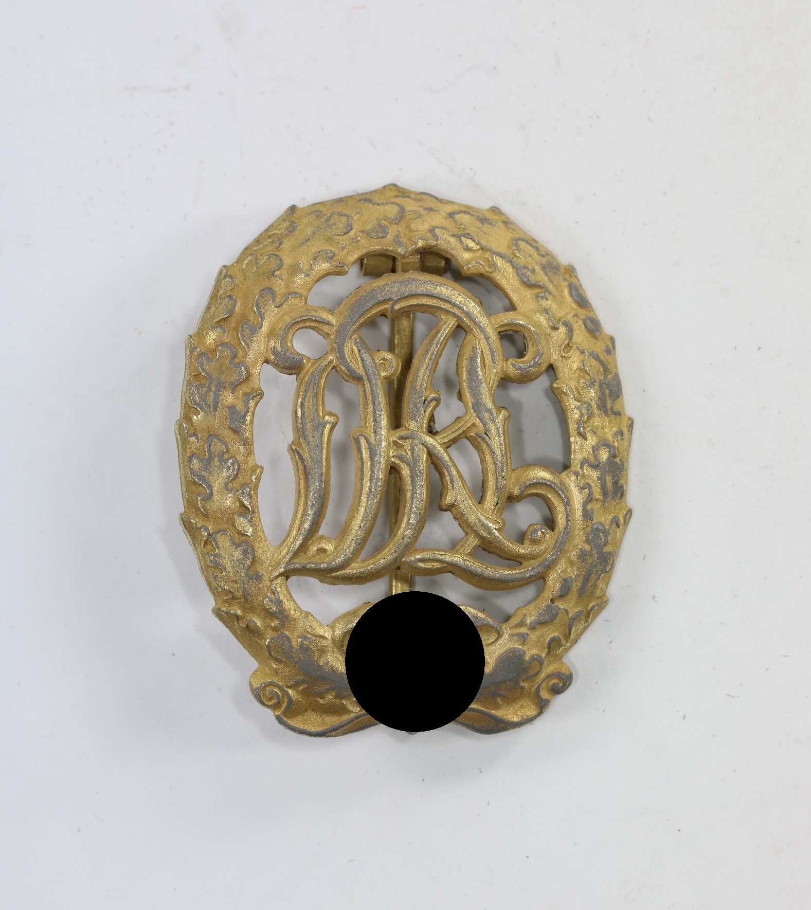 Zink, sehr guter, nur leicht getragener Zustand. Mit noch schöner Vergoldung. Ohne Hersteller, aber eine bekannte Variante der Firma Wernstein, Jena.