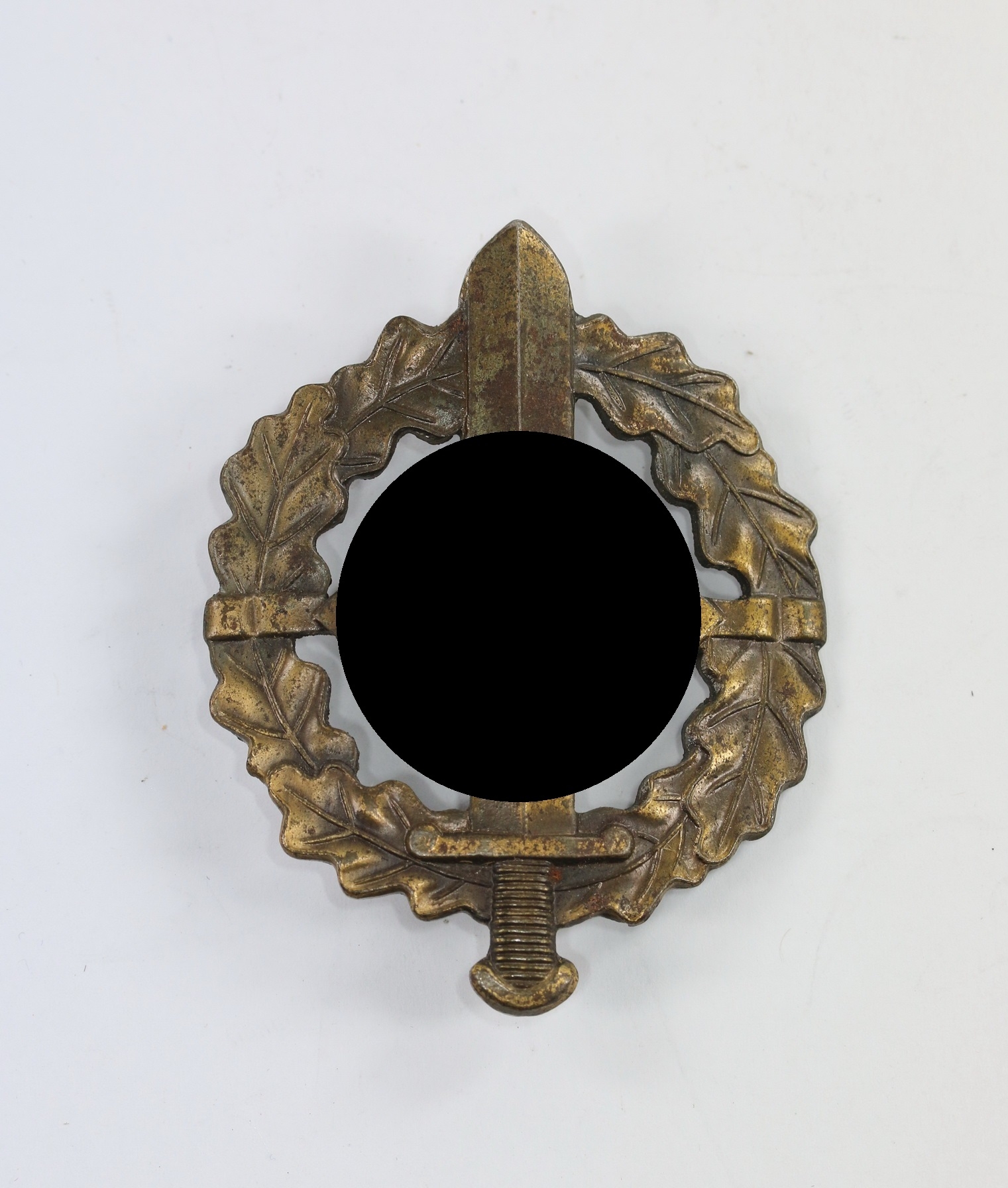 Eisen bronziert, sehr guter, leicht getragener Zustand. Mit Hersteller „RZM M1/100“ für die Firma Werner Redo, Saarlautern.