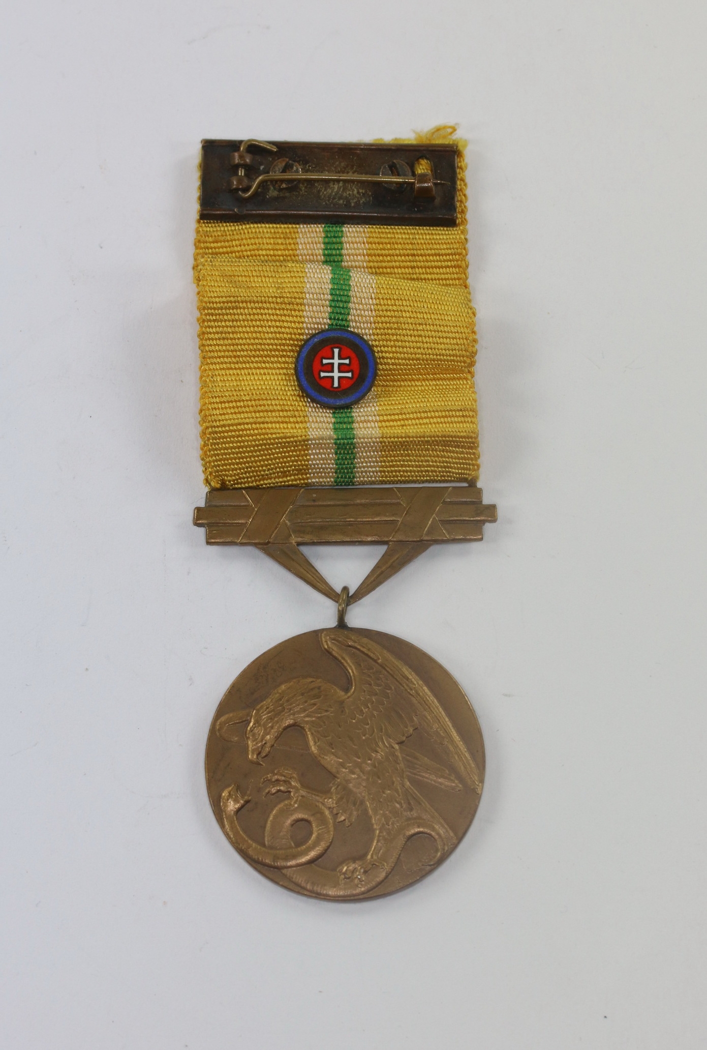 Bronze, sehr guter, nur minimal getragener Zustand. An originalen Band mit typischer Nadel. Auch oft an die verbündeten Deutschen verliehen.