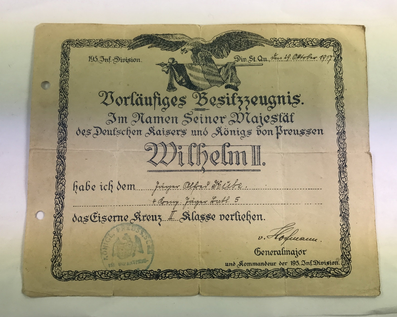 In a good, slightly used condition. Folded and hole punched. Decorative design.