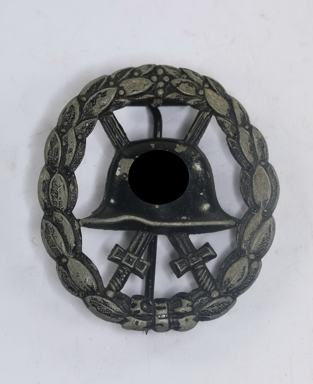 Zink, duchbrochen / ausgeschnitten, sehr guter, nur leicht getragener Zustand. Mit noch schöner Schwärzung. Ohne Hersteller Markierung, aber eine bekannte Variante der Firma Otto Schickle, Pforzheim.