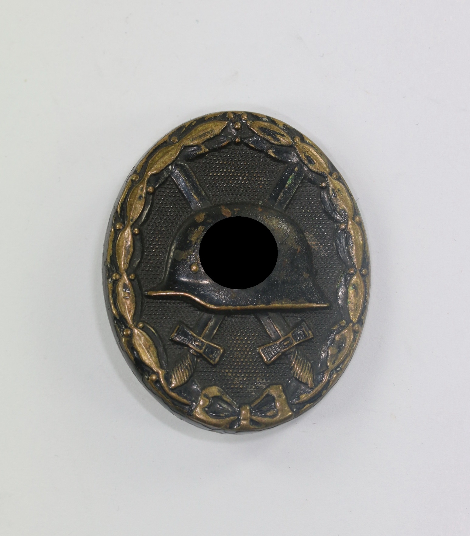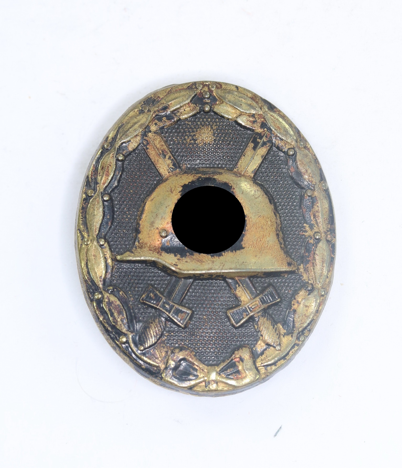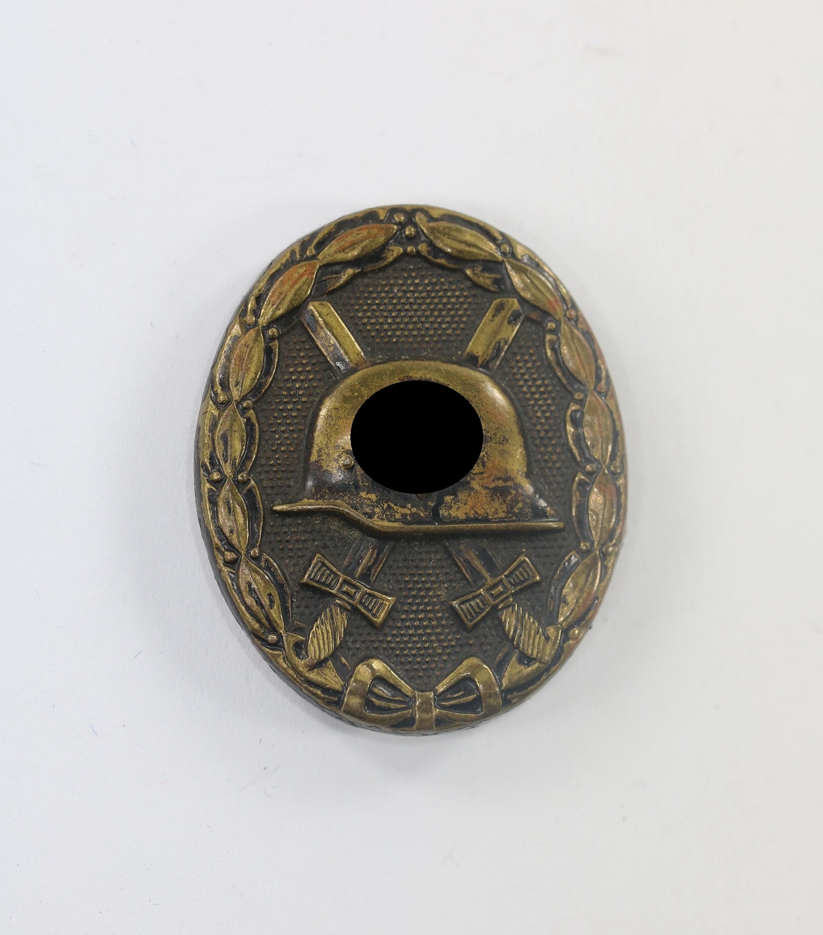 Tombak/brass based and in a very good, slightly worn condition with remains of the black paint still present.