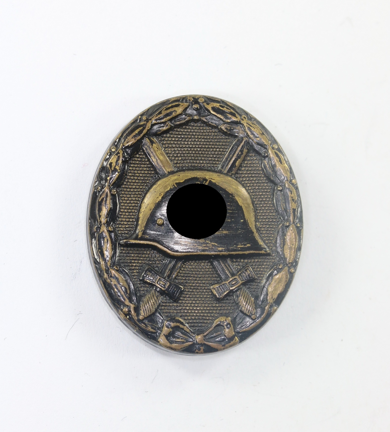 Tombak/brass based and in a good, slightly worn condition with lots of the black paint still present.