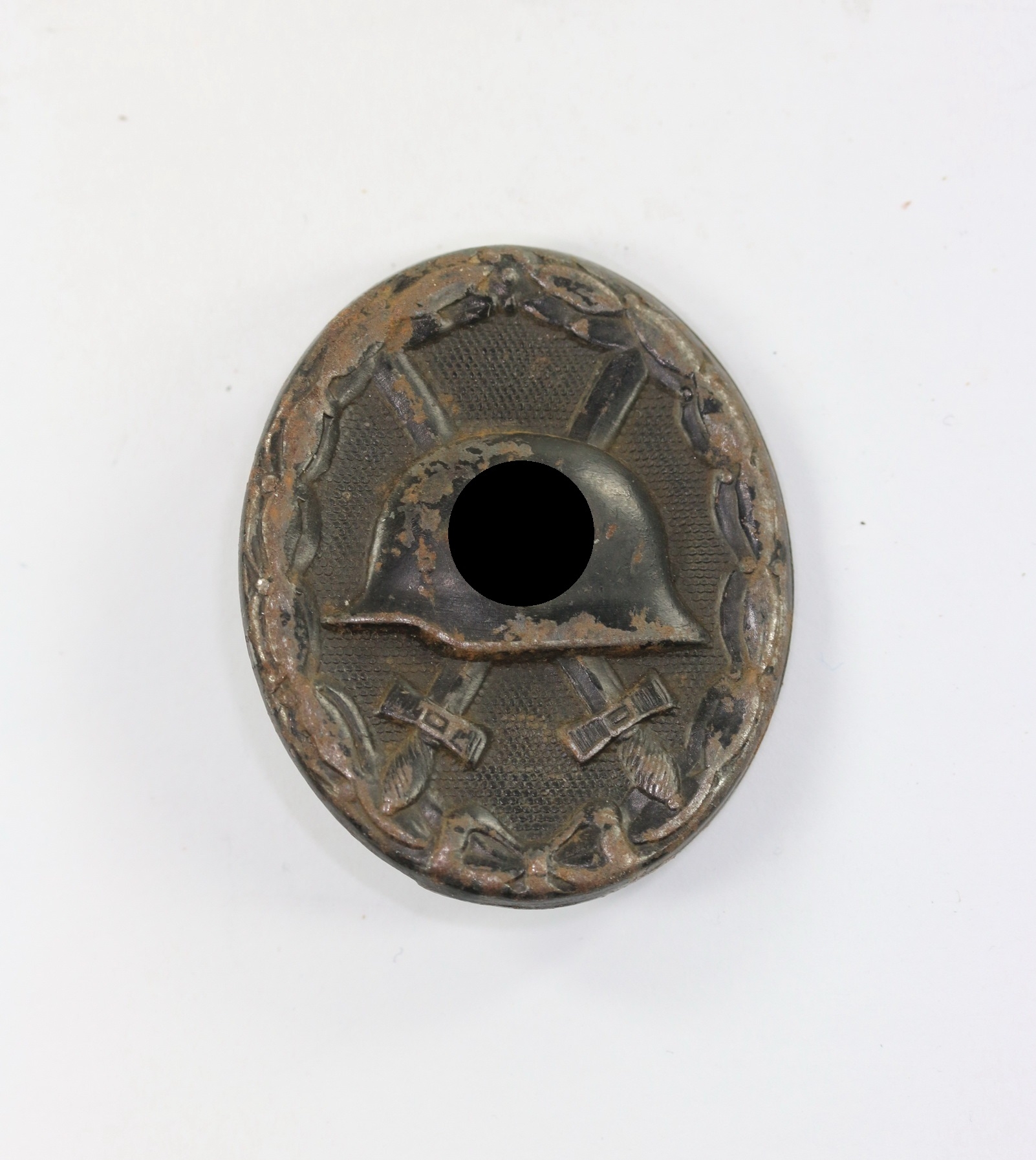 Iron based and in a good, slightly worn condition with lots of the black paint still present.