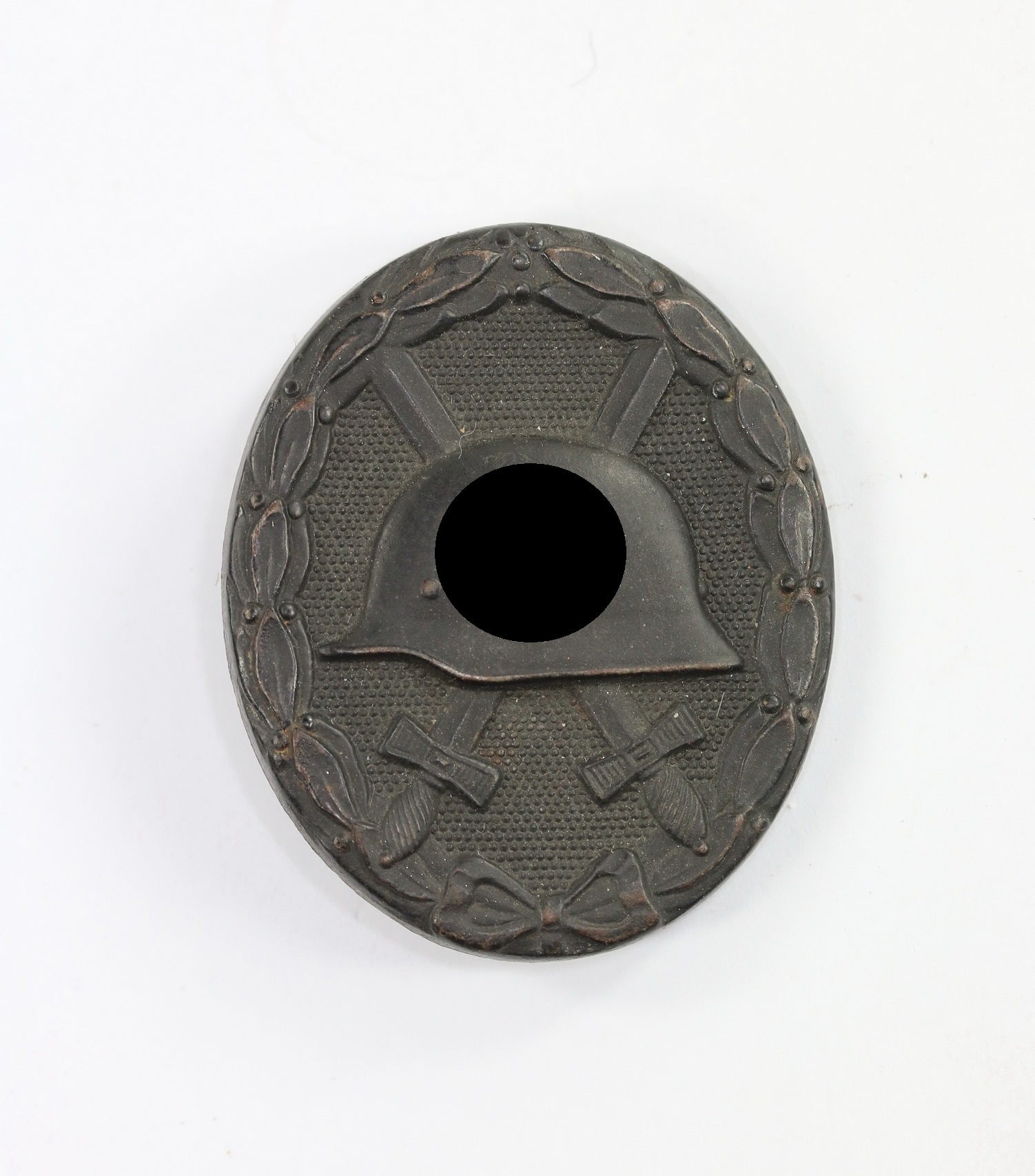 Iron based and in a good, slightly worn condition with lots of the black paint still present.
