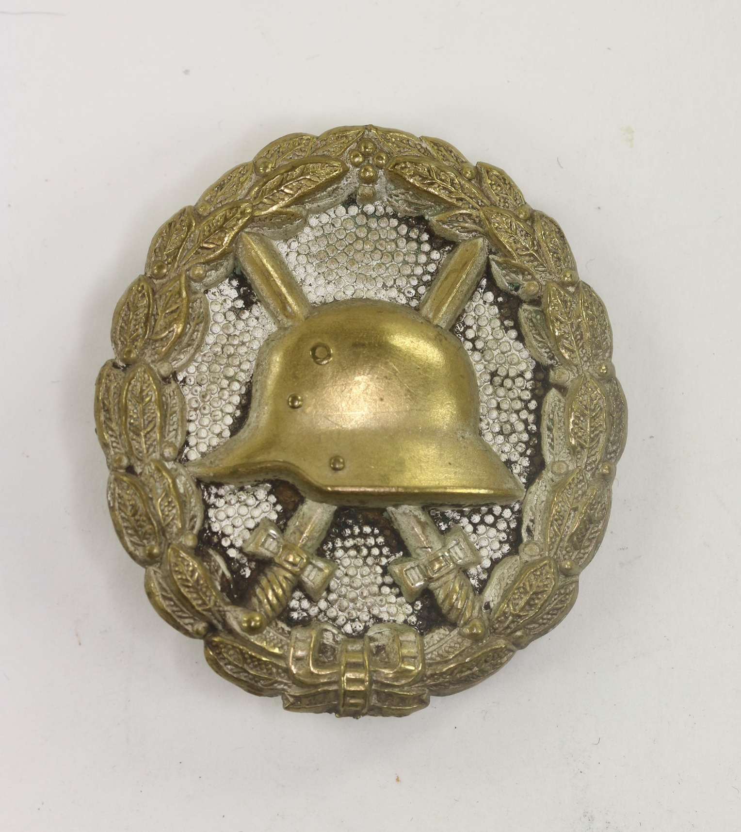 Tombak/brass based and in a very good,slightly worn condition with practically all of the silver plate still present and some patina.