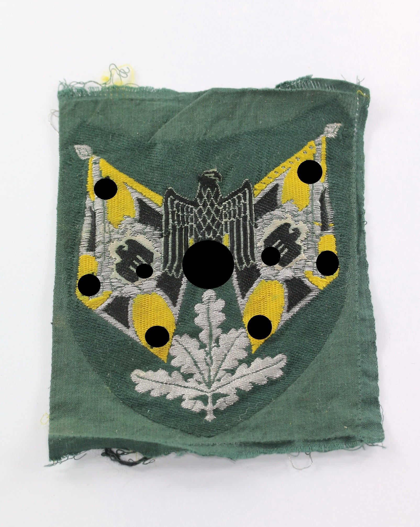 Bevo-woven on dark green background. Yellow for signals and in an excellent, unworn condition.