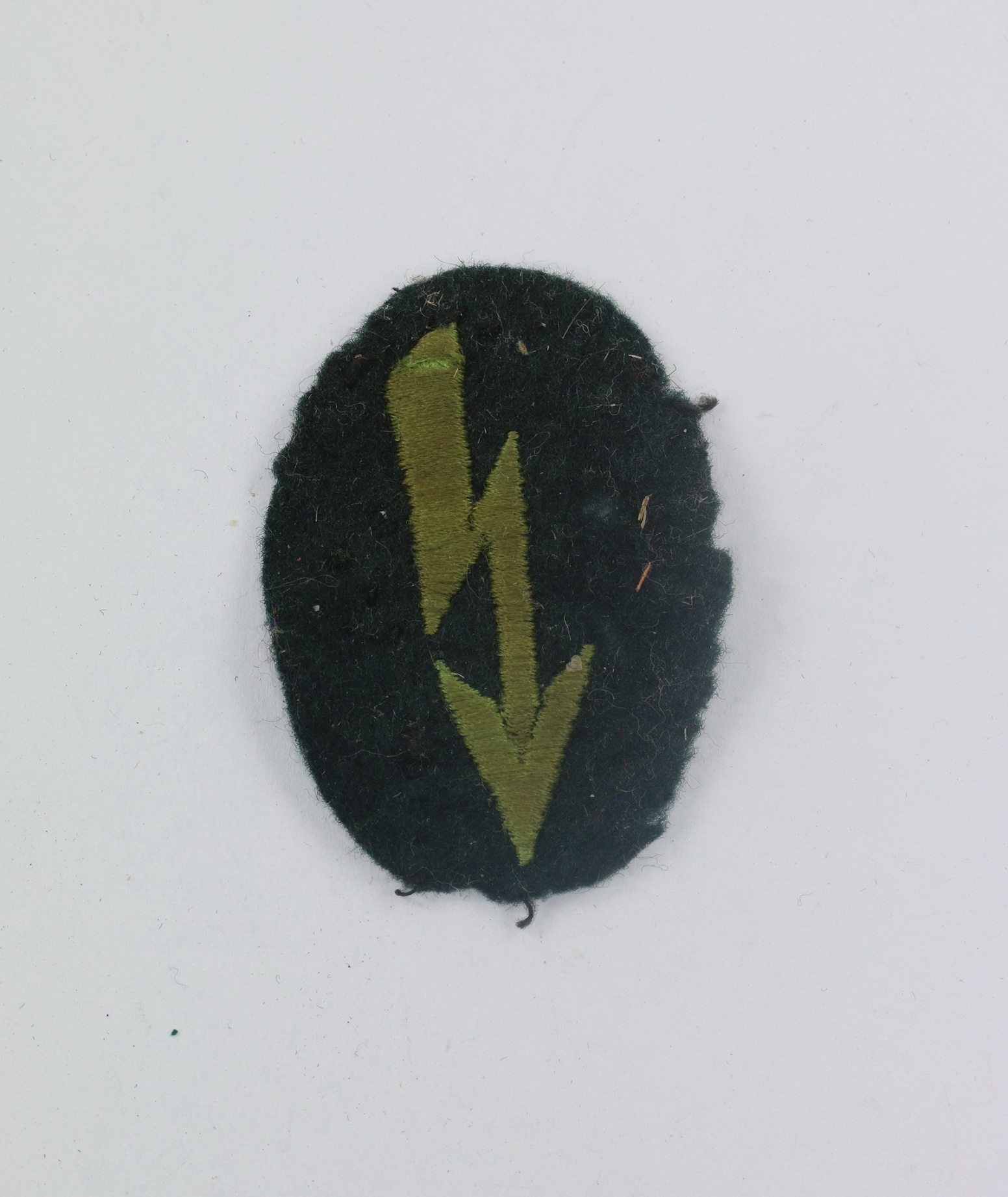 Wiesengrüne Stickerei, auf dunkelgrünen Tuch. Sehr guter, ungetragener Zustand. Mit leichten Altersspuren.
