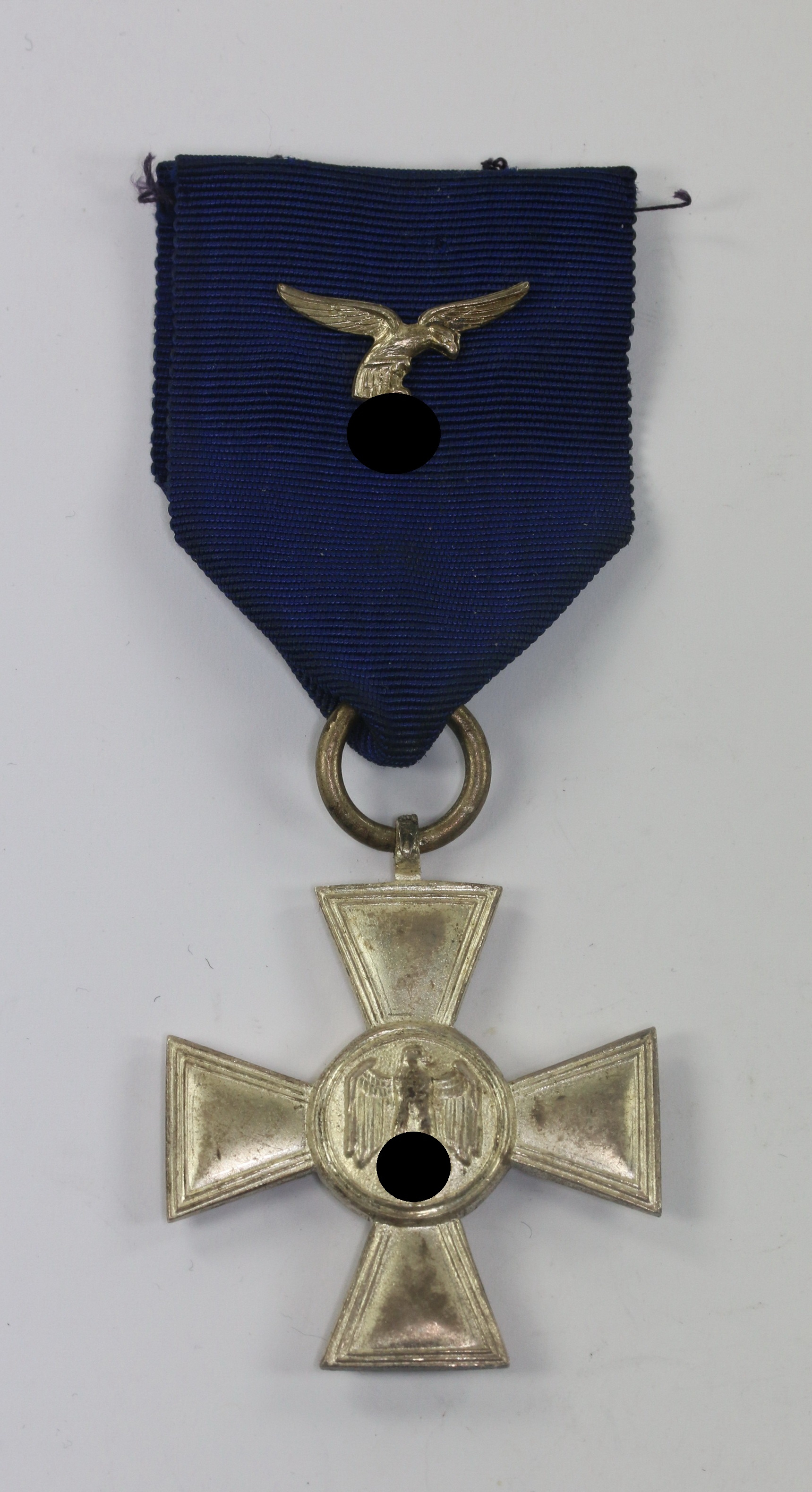 Iron based and in a very good, slightly worn condition with all of the silver plate still present and some patina. With Luftwaffe type eagle on the ribbon.