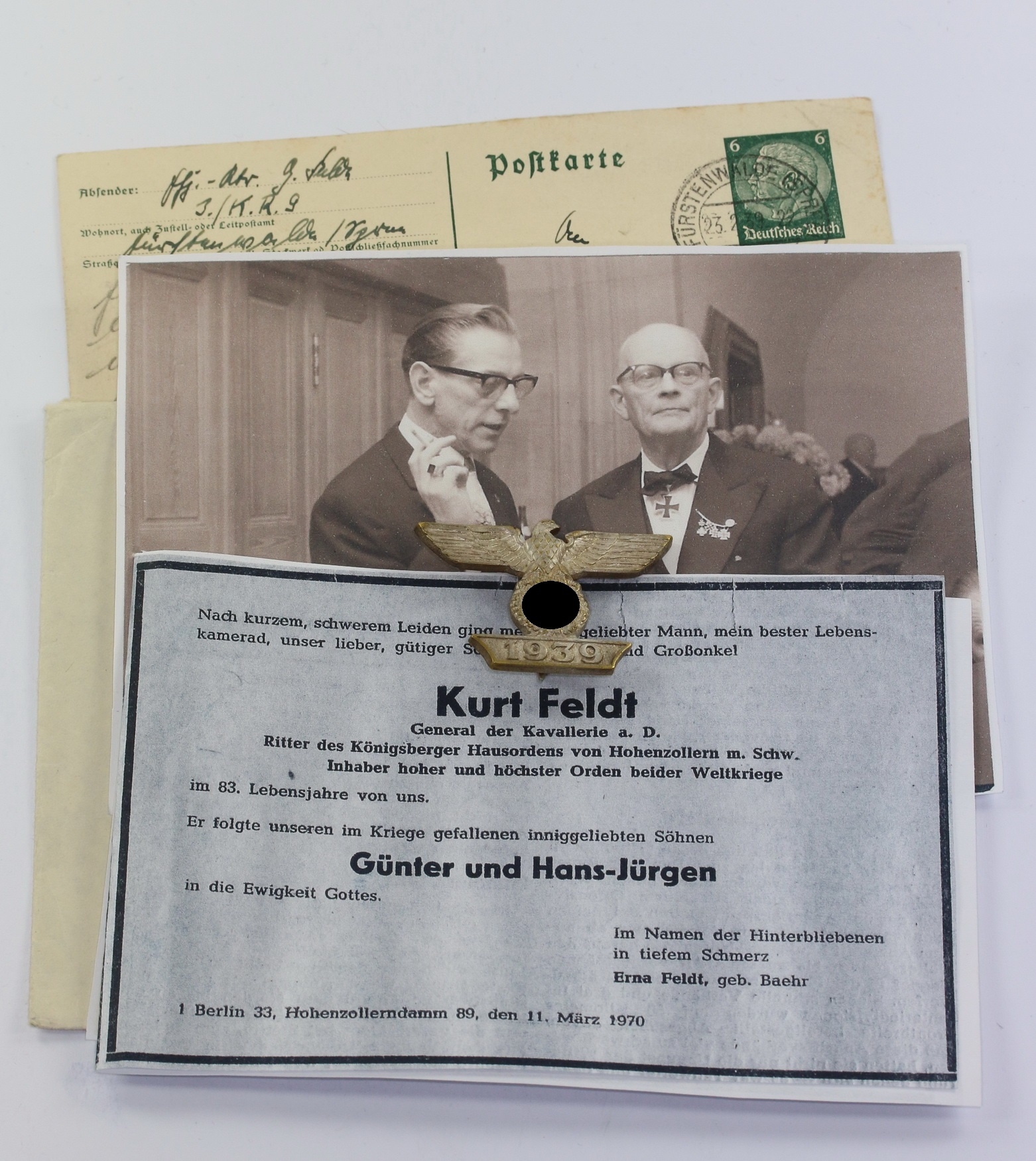Buntmetall, sehr guter, nahe zu ungetragener Zustand. Mit vollständiger, frostiger Versilberung, Hakenkreuz und Kanten poliert, mit leichten Ansätzen von Patina. Ohne Hersteller, aber eine bekannte Variante, der Firma C.E. Juncker, Berlin (L/12). Mit extrem seltener Variante beim Nadelsystem. Die hier angebotene Spange ist die im Fachbuch von Frank Thater, Das Eiserne Kreuz 1. Klasse von 1939, auf Seite 938/939 gezeigte Stück. Aus den Nachlass des General der Kavallerie Kurt Feldt.