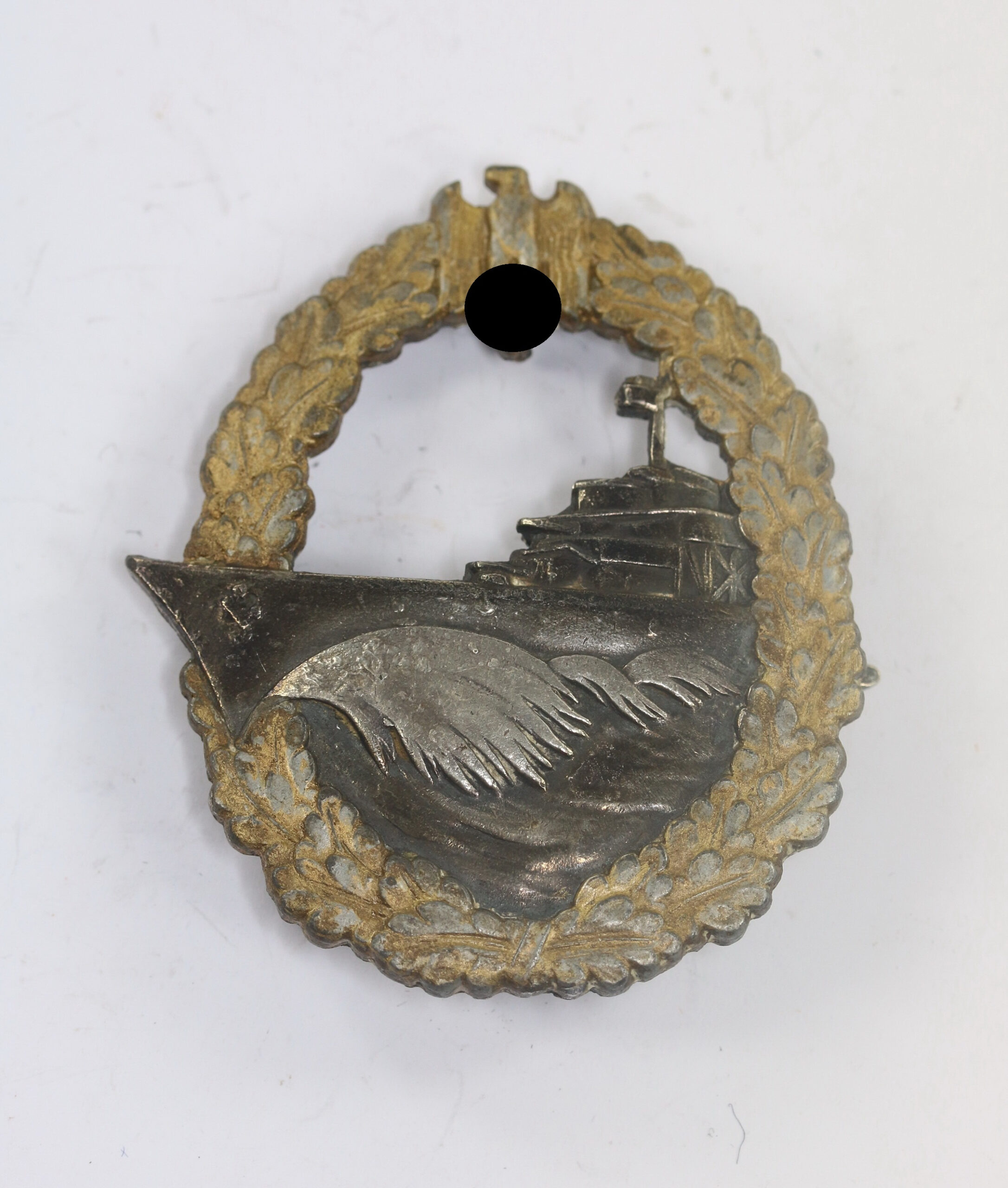 Zink, sehr guter, leicht getragener Zustand. Mit Hersteller „Schwerin Berlin 68“. Siehe Weber/Skora, Die Kriegsabzeichen der Kriegsmarine.