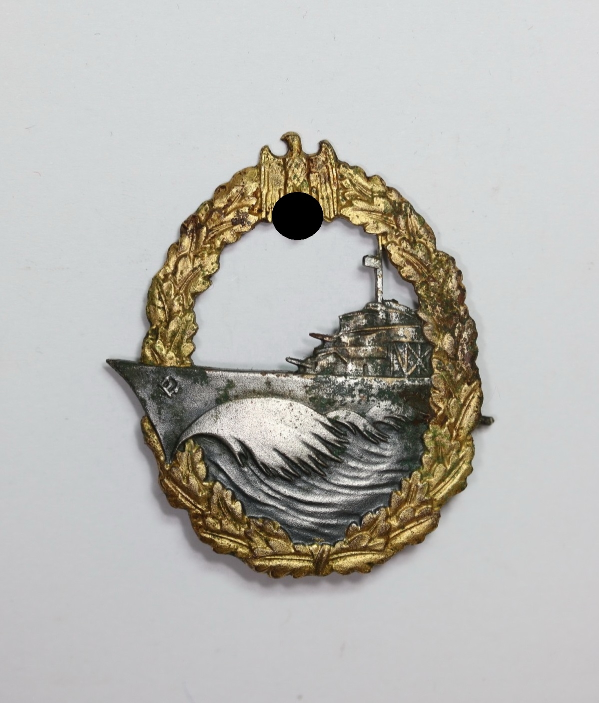 Buntmetall, Sehr guter Zustand, aber mit Alters- und Lagerspuren. Der Haken zum einhängen in die Schlaufe an der Uniform abgebrochen, die Tragenadel fest. Ohne Hersteller, aber eine bekannte Variante der Firma Paul Meybauer, Berlin. Sieh GCA-Datenbank.